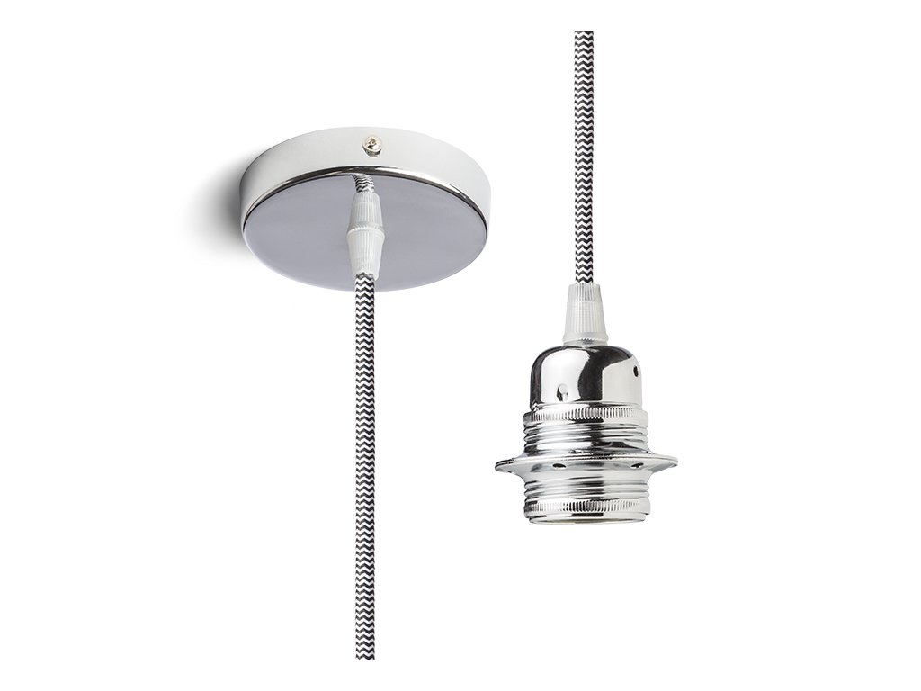 Závěsná sada s chromovou kruhovou základnou, textilním kabelem a kovovou paticí E27. Vhodné pro samostatné použití nebo k zavěšení lehkých stínidel. Vhodné pro stínidla: ARISTA, DELI, JAKARANDA, DOUBLE 40/30, DOUBLE 55/30, ASPRO 40/30, RON 40/25, RON 55/30, RON 60/19, TEMPO 30/19, TEMPO 50/19.Doplňkové parametry