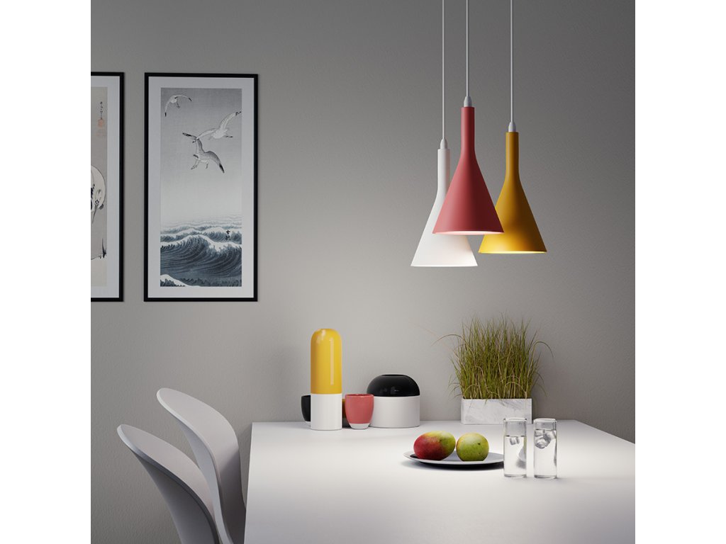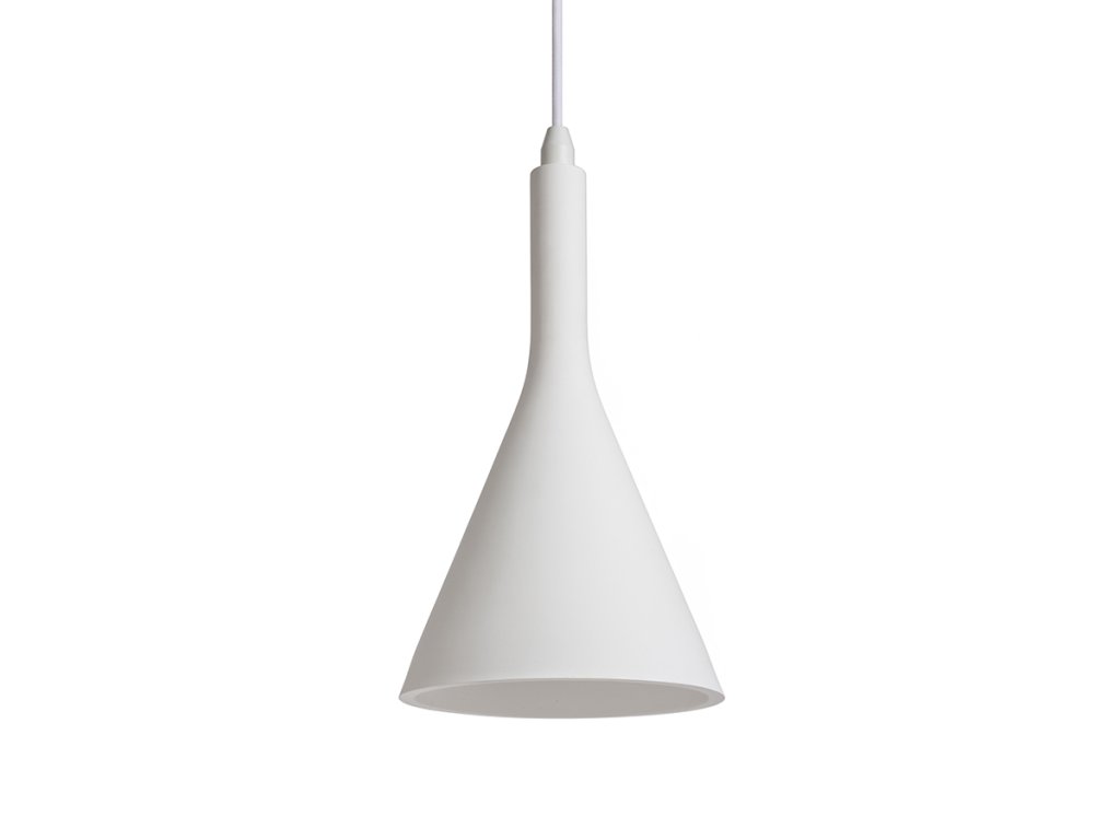Závěsné sádrové svítidlo pro LED světelný zdroj s paticí E27. Stropní základna bílý lakovaný kov. Svítidlo je možné přemalovat interiérovými barvami.Doplňkové parametry