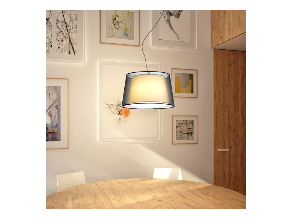 Závěsná textilní lampa s dvojitým stínidlem.Doplňkové parametry