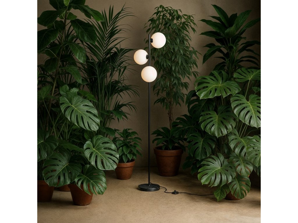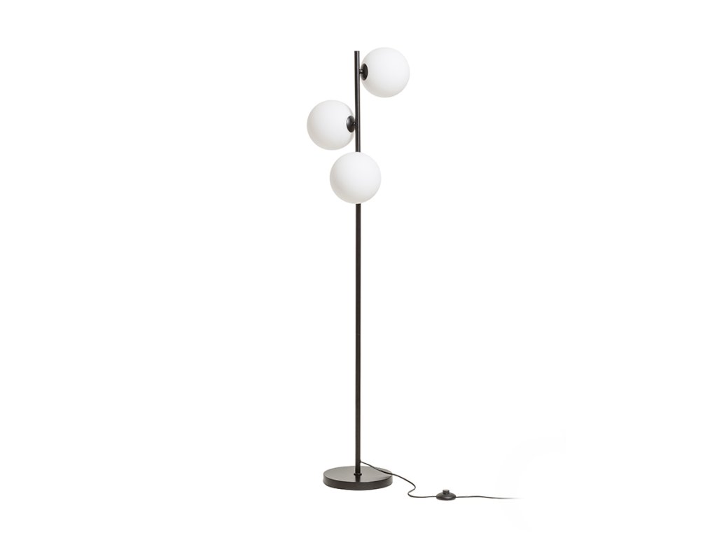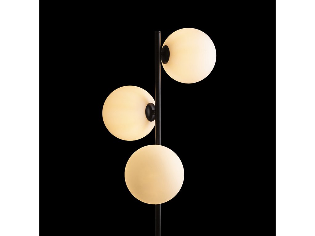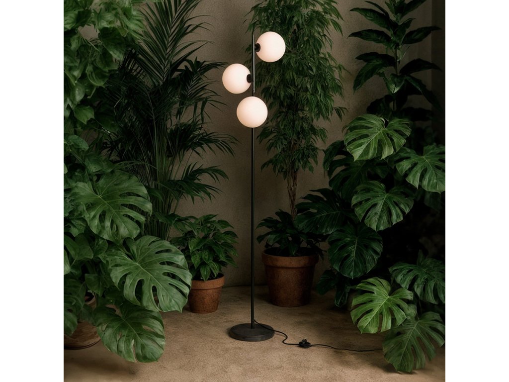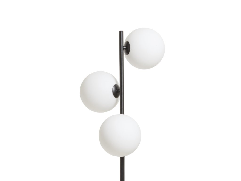 Stojanová lampa se třemi skleněnými stínidly z opálového skla na černě lakovaném podstavci. Vhodné pro LED světelné zdroje G9.Doplňkové parametry