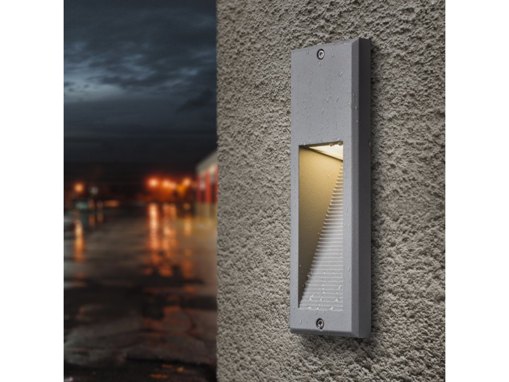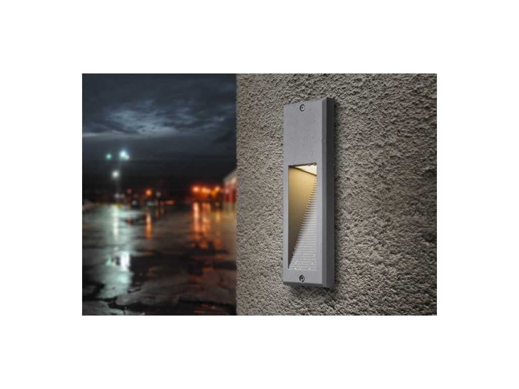 Venkovní svítidlo zápustné do zdi. Viditelný rámeček má hloubku 2 cm. Instalace svítidla pouze svícením dolů.Doplňkové parametry