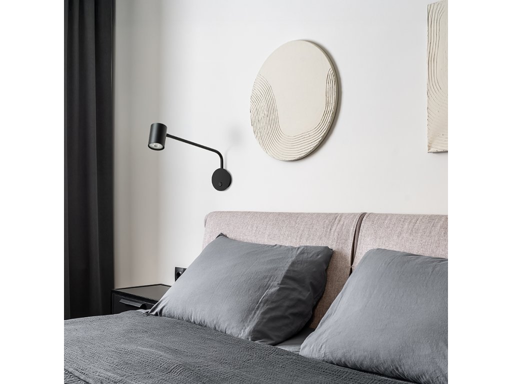 Nástěnná lampička s náklopným reflektorem a pohyblivým ramenem ve vodorovné ose svítidla pro LED světelné zdroje s paticí GU10.Doplňkové parametry