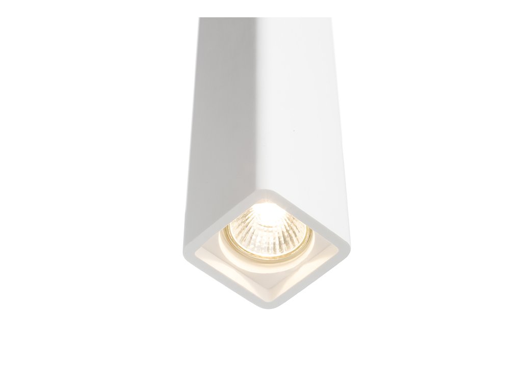 Závěsné sádrové svítidlo pro světelný zdroj s paticí GU10. Stropní základna bílý lakovaný kov. Svítidlo je možné přemalovat interiérovými barvami.Doplňkové parametry