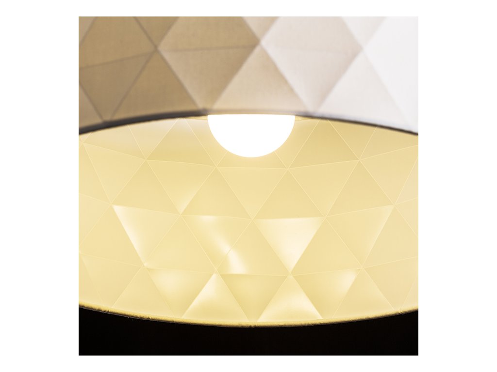 Samostatné textilní stínidlo s geometrickým 3D povrchem. Pro použití se závěsnou sadou nebo s podstavcem pro patici E27. Vhodné doplňky: HEX, ELISA, ENZO, KOMBIX, LISA, AMBITUS, ALVIS, CORTINA.Doplňkové parametry