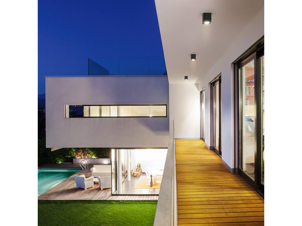 Venkovní stropní hranaté svítidlo pro LED žárovku s paticí GU10.Doplňkové parametry
