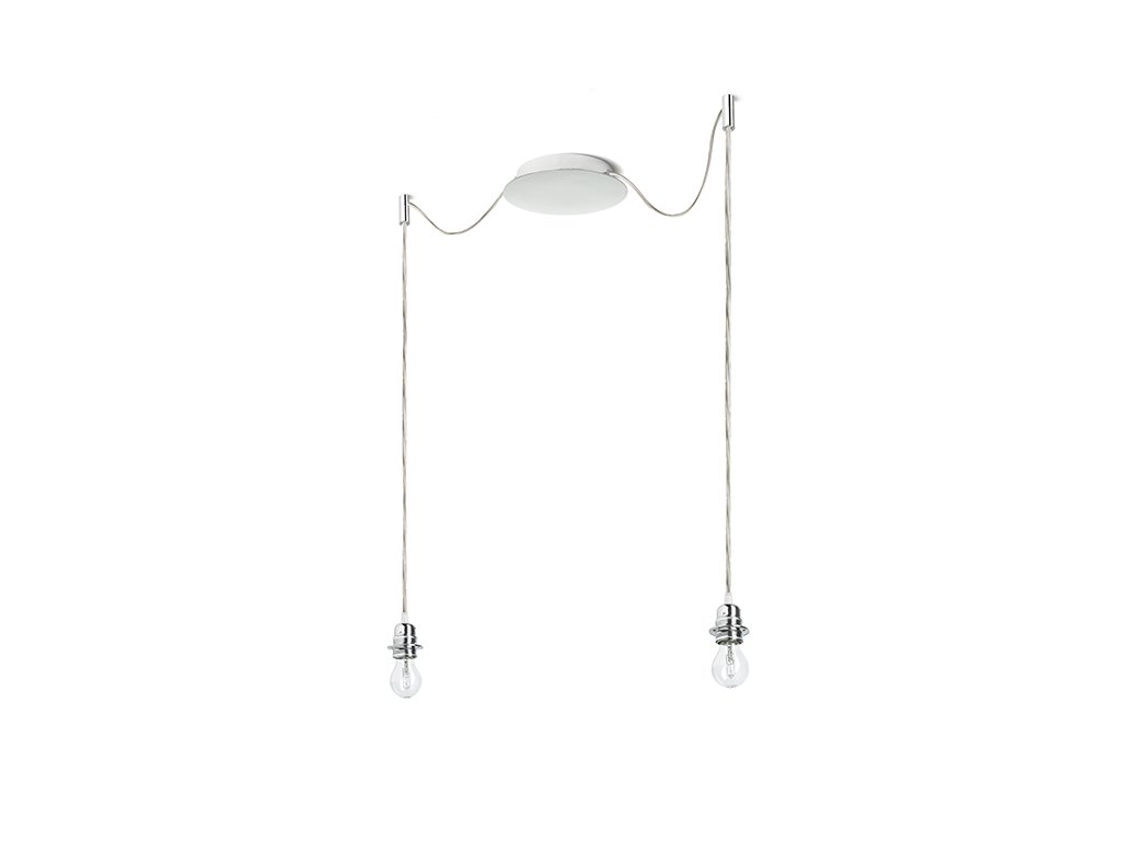 Závěsné svítidlo s centrální stropní základnou a dvěma jednotlivými textilními závěsy s kovovou paticí E27. Závěsy jsou opatřeny stropními chromovými úchyty, které je možno umístit v libovolné vzdálenosti od základny do délky kabelu 3 m. Vhodné pro stínidla: ARISTA, DELI, JAKARANDA, DOUBLE 40/30, DOUBLE 55/30, ASPRO 40/30, ASPRO 55/30, RON 15/20, RON 40/25, RON 55/30, TEMPO 15/30, TEMPO 30/19.Doplňkové parametry