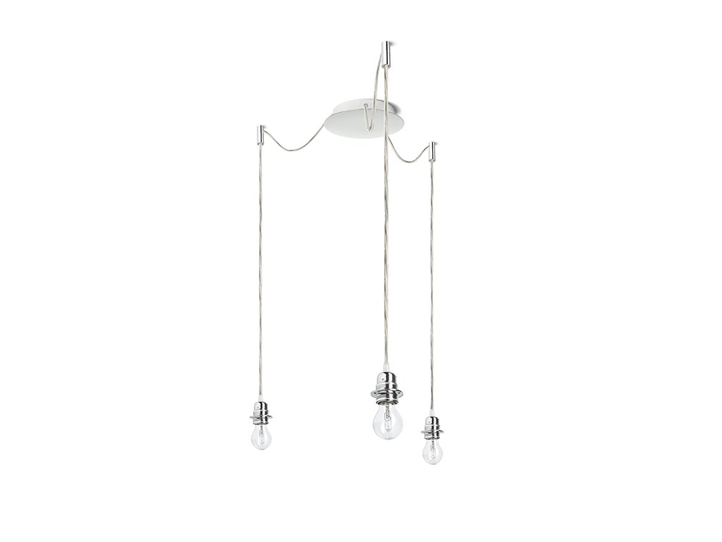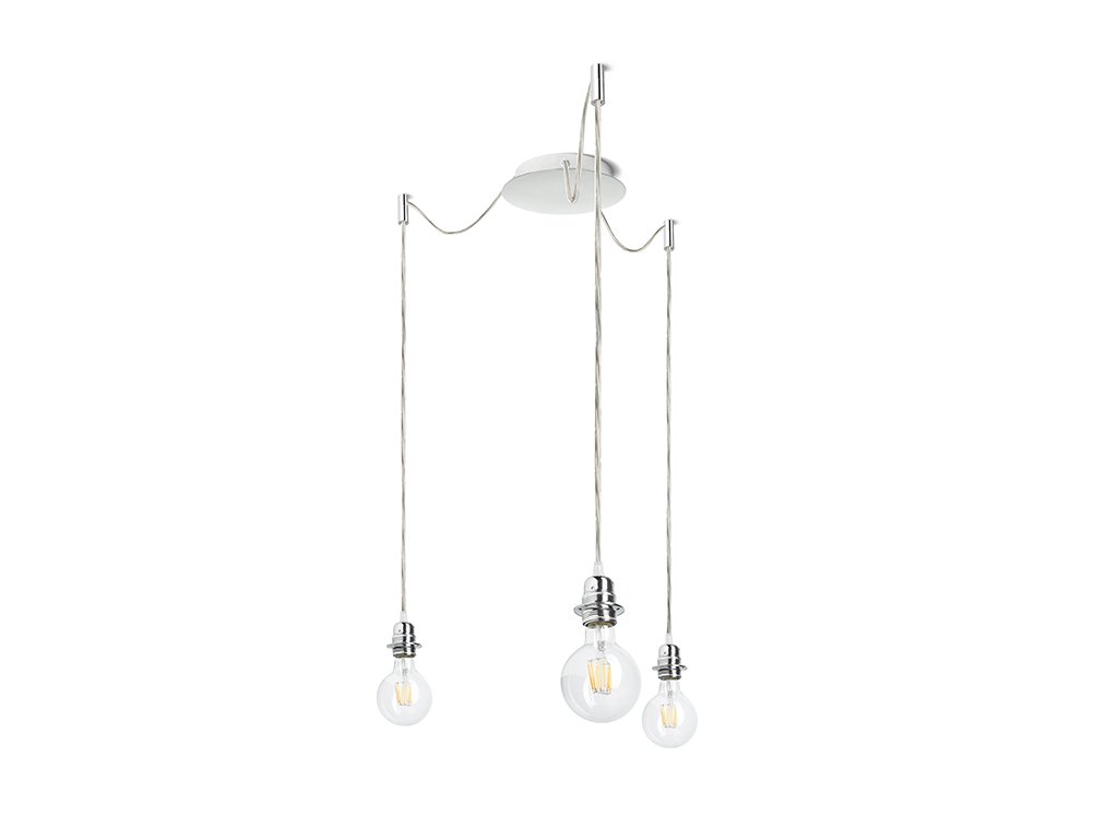 Závěsné svítidlo s centrální stropní základnou a třemi jednotlivými textilními závěsy s kovovou paticí E27. Závěsy jsou opatřeny stropními chromovými úchyty, které je možno umístit v libovolné vzdálenosti od základny do délky kabelu 3 m. Vhodné pro stínidla: ARISTA, DELI, JAKARANDA, DOUBLE 40/30, DOUBLE 55/30, ASPRO 40/30, ASPRO 55/30, RON 15/20, RON 40/25, RON 55/30, TEMPO 15/30, TEMPO 30/19.Doplňkové parametry