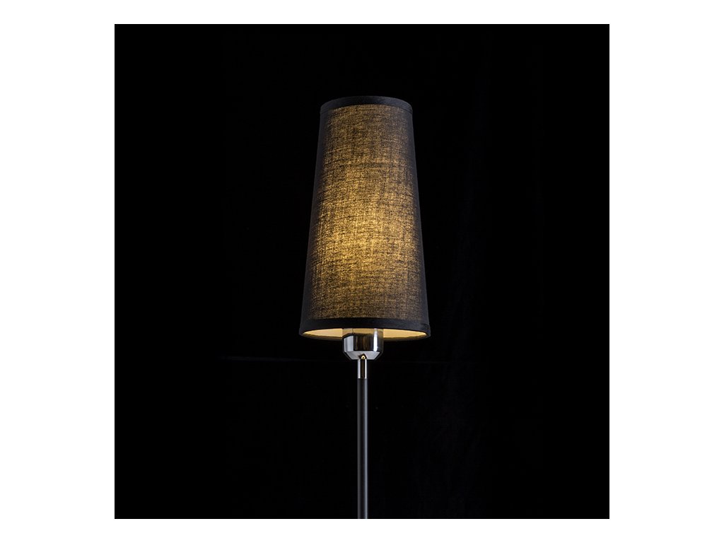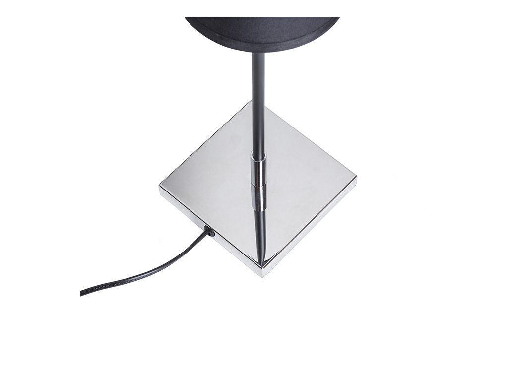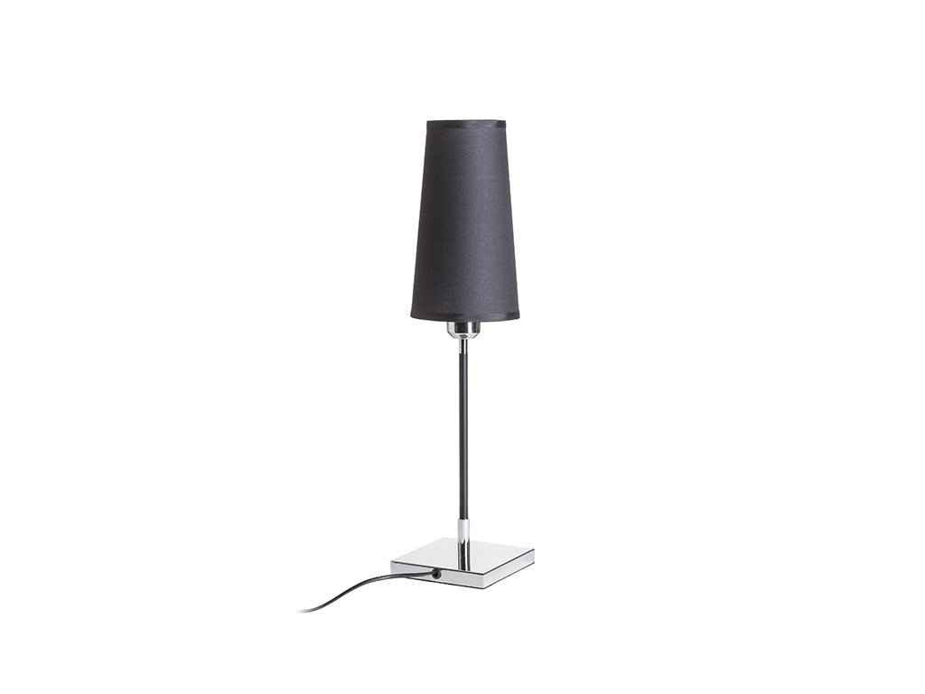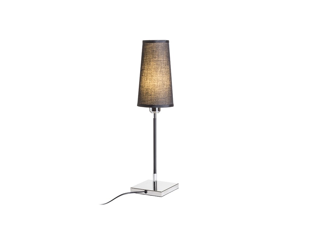 Stolní lampa s textilním kónickým stínidlem pro uchycení na E27 závit. Kombinace chromu a černé elegantní tyčky.Doplňkové parametry