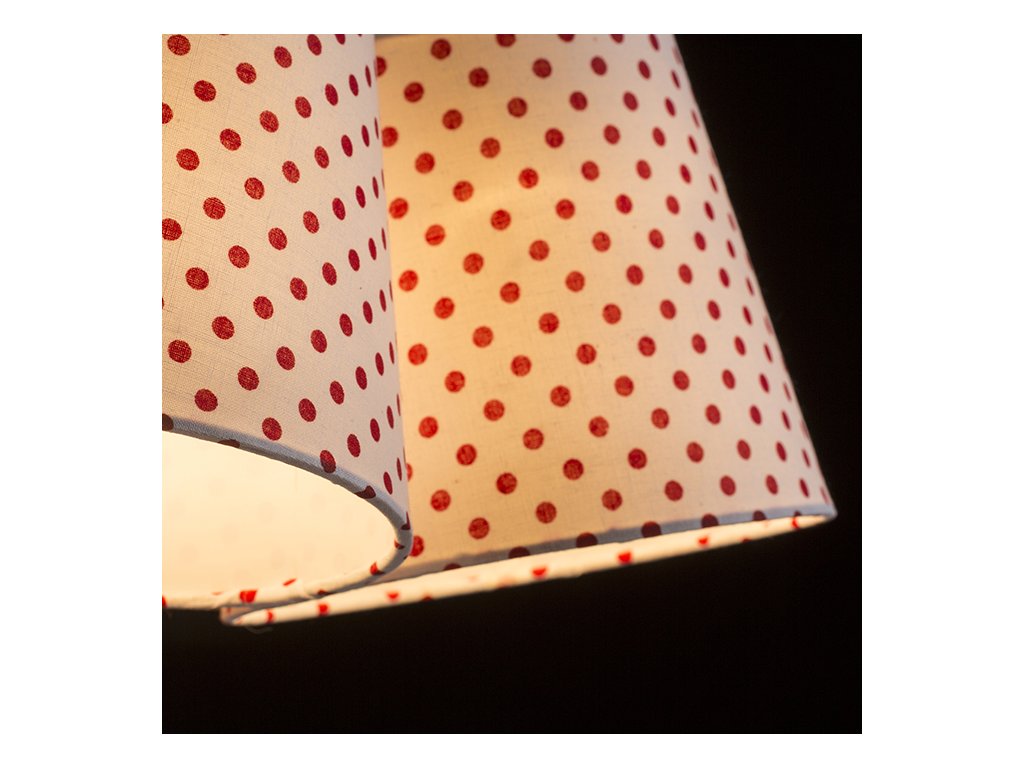 Zavěšená tři textilní stínidla z jedné základny na tři žárovky s paticí E14.Doplňkové parametry