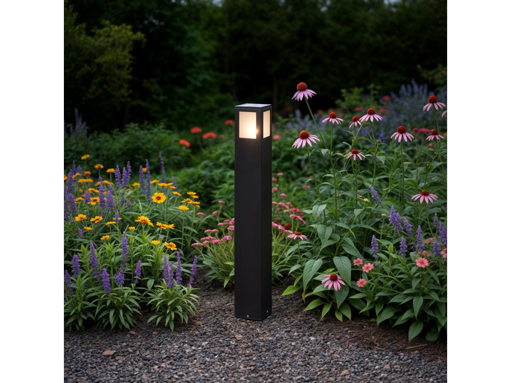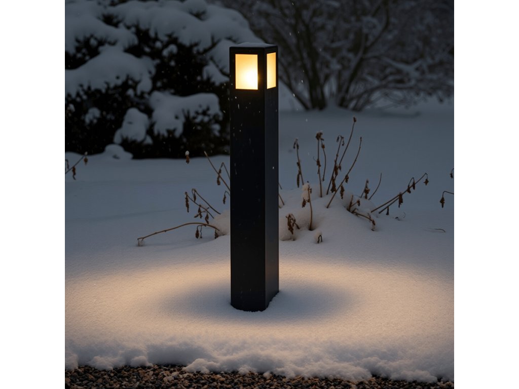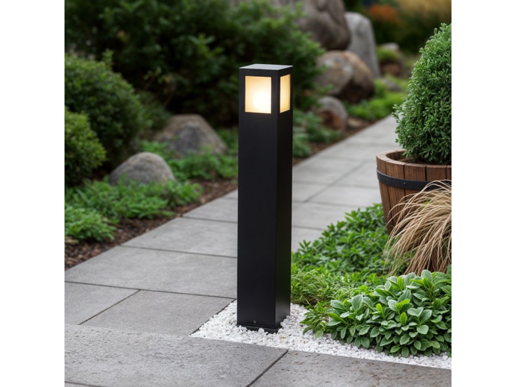 Venkovní stojanové svítidlo pro úsporný světelný zdroj s paticí E27. Stínidla jsou ze satinované skla.Doplňkové parametry