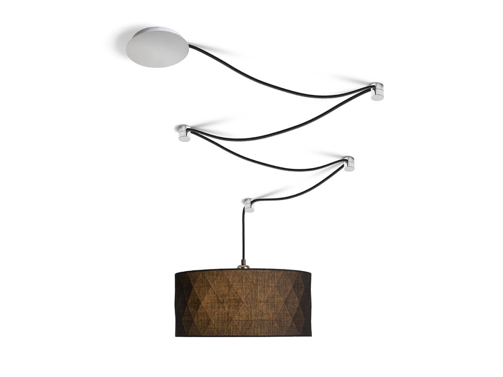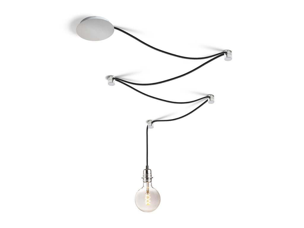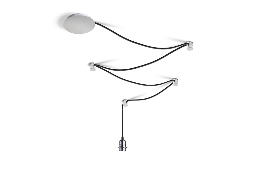 Variabilní sada vhodná pro samostatné použití s designovou žárovkou nebo zavěšení lehkých stínidel. Sada lze uchytit na strop nebo stěnu pomocí úchytek umístěných na černém textilním kabelu. Sada obsahuje 4 kusy černých plastových úchytek nebo 4 kovové pochromované úchytky. Úchytky lze objednat i samostatně. Vhodné pro stínidla: ARISTA, ASPRO, DOUBLE, JAKARANDA, RON.Doplňkové parametry