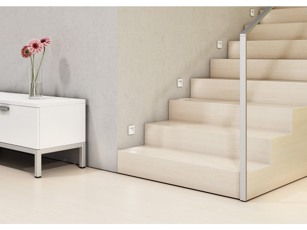 Zápustné hranaté svítidlo do stěny vhodné pro venkovní i vnitřní použití ve třech barevných provedeních. Včetně montážního boxu. Instalace pouze svícením dolů.Doplňkové parametry