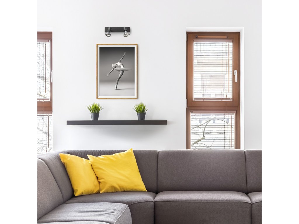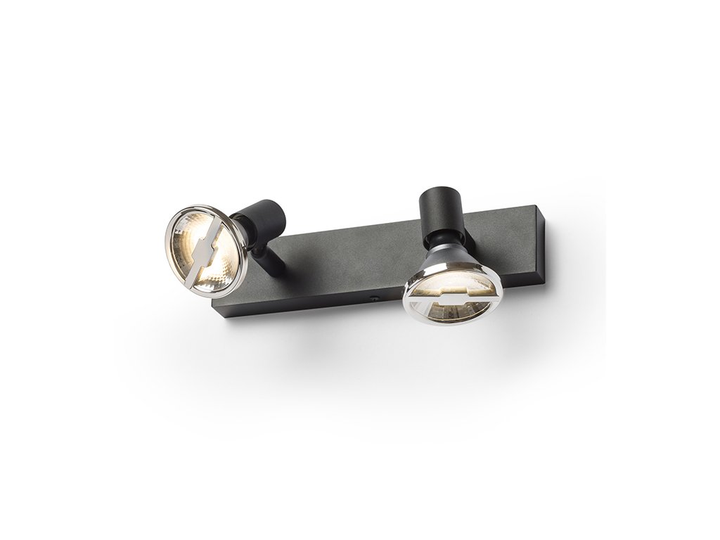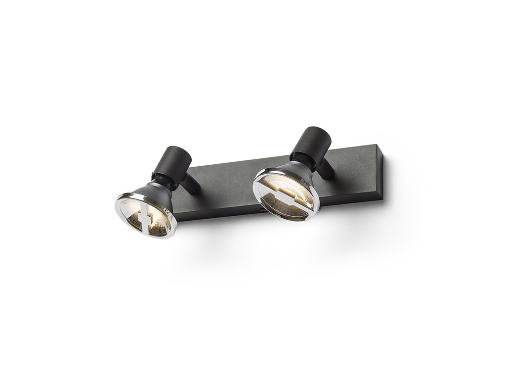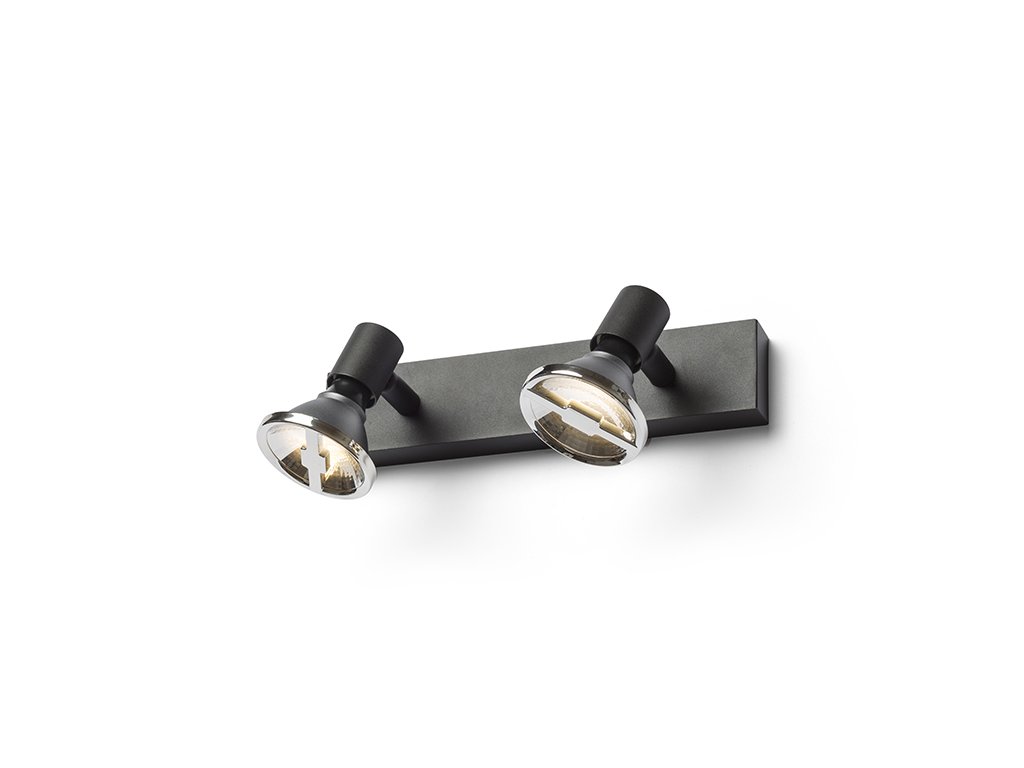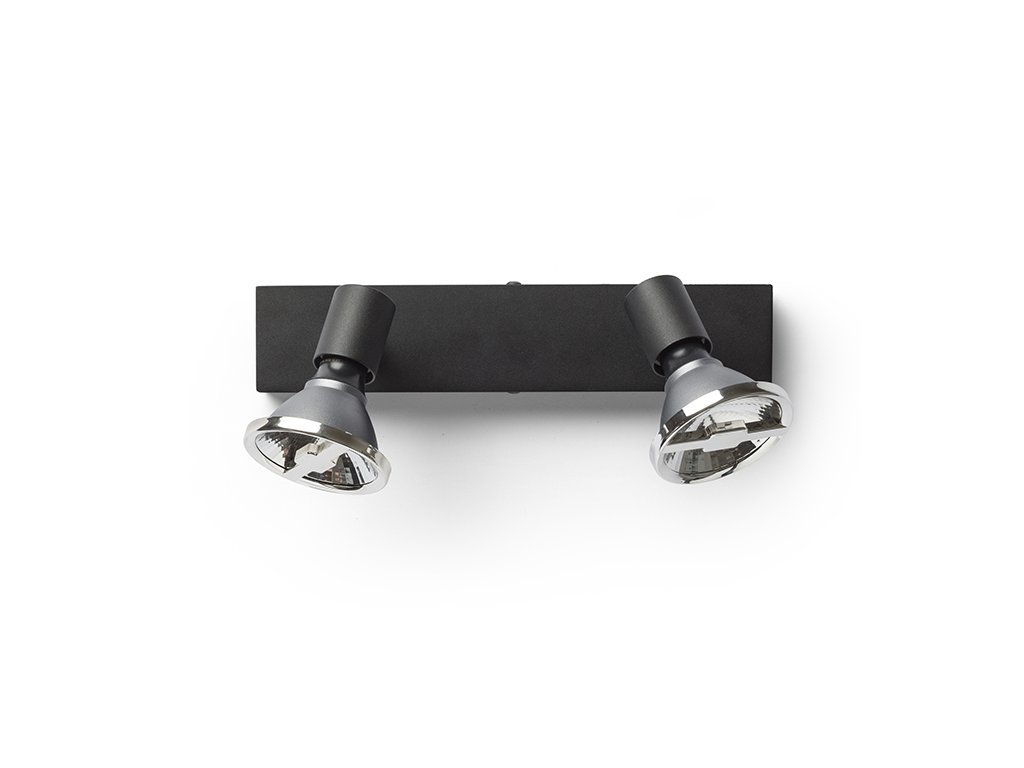 Jednoduchá kovová dvojbodovka vhodná pro umístění na strop a stěnu, pro použití s designovou reflektorovou žárovkou GU10.Doplňkové parametry