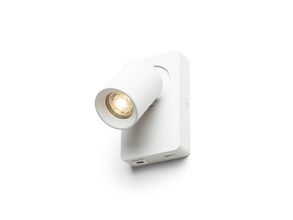 Nástěnné lakované svítidlo s náklopným reflektorem pro světelné zdroje s paticí GU10. Svítidlo má do základny integrovaný USB port vhodný pro nabíjení například telefonu.Doplňkové parametry