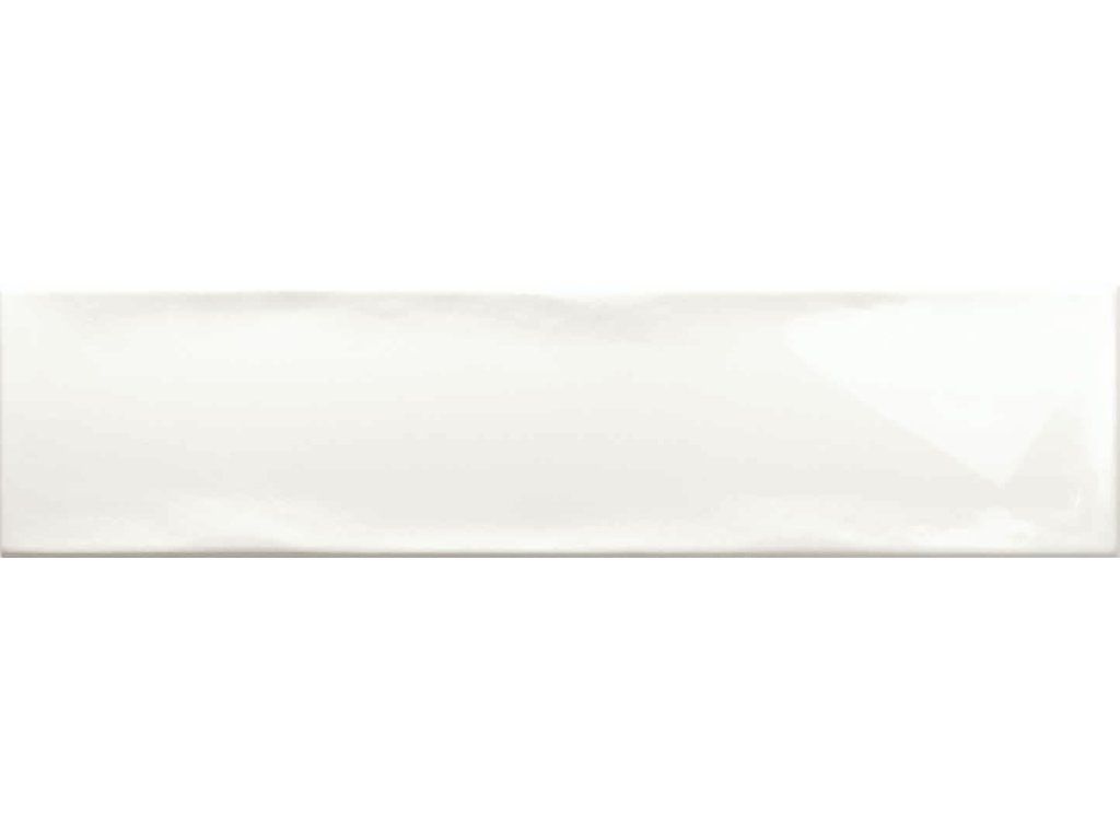 Obklad v bílé barvě o rozměru 7,5x30 cm a tloušťce 8 mm s lesklým povrchem. Vhodné pouze do interiéru.