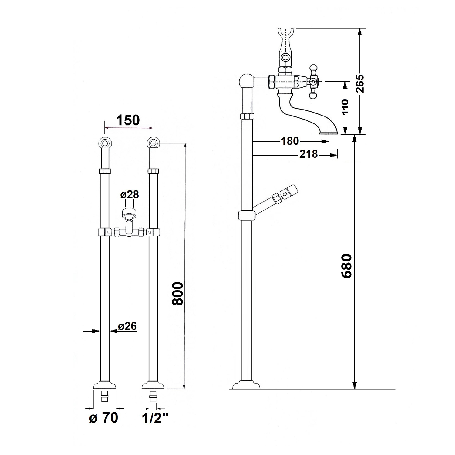 Sapho ANTEA připojení pro instalaci vanové baterie do podlahy (pár), bronz 9846