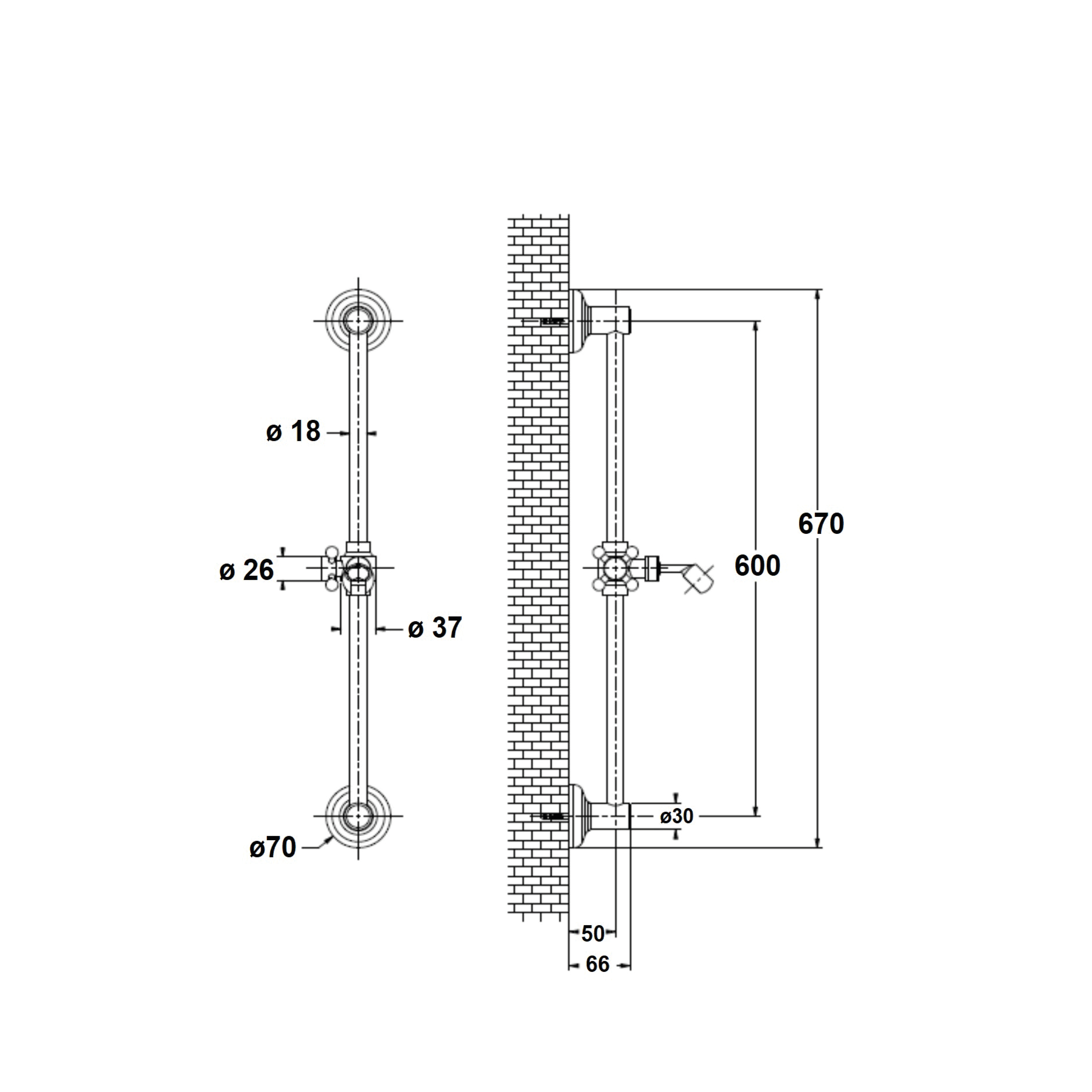 Sapho ANTEA sprchová tyč, posuvný držák, kulatá, 670mm, chrom SAL0031