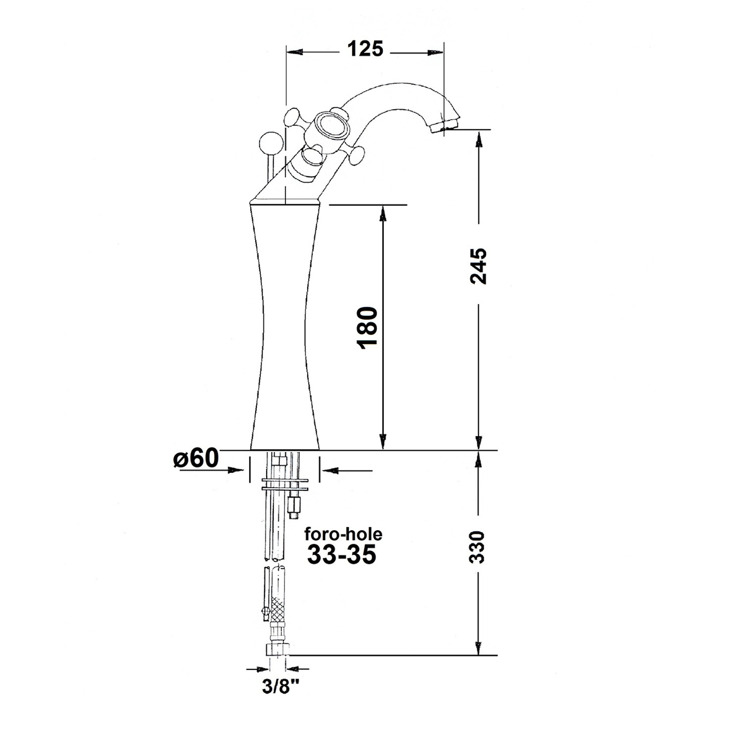 Sapho ANTEA stojánková umyvadlová baterie vysoká s výpustí, výška 245mm, bronz 3176L