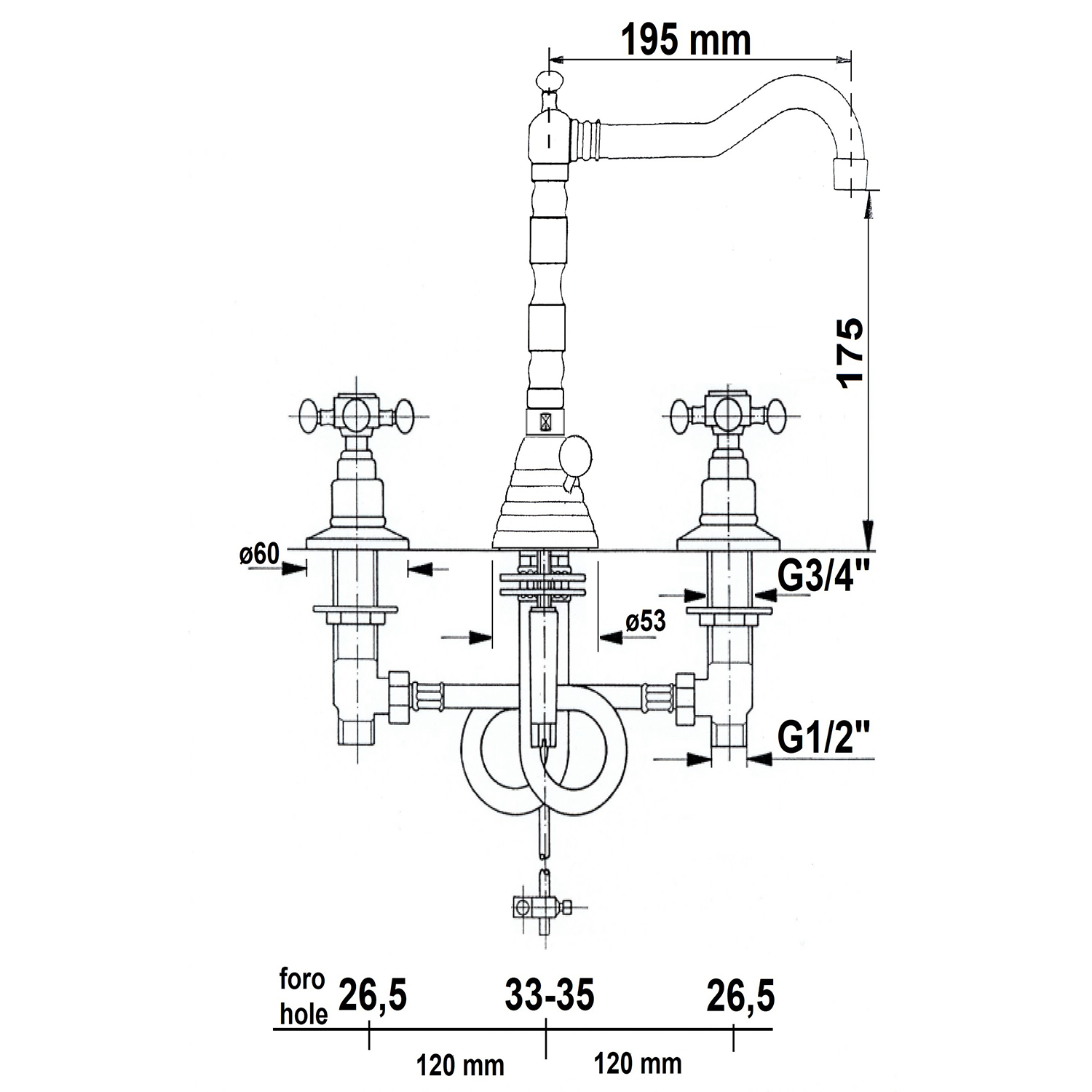 Sapho ANTEA tříprvková umyvadlová baterie s retro hubicí, s výpustí, chrom 3221