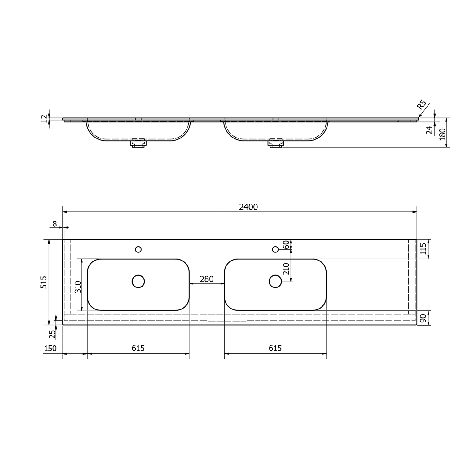Sapho ARUBA dvojumyvadlo, Rockstone, 240x51,5cm, levé, bílá mat AR240-B2L