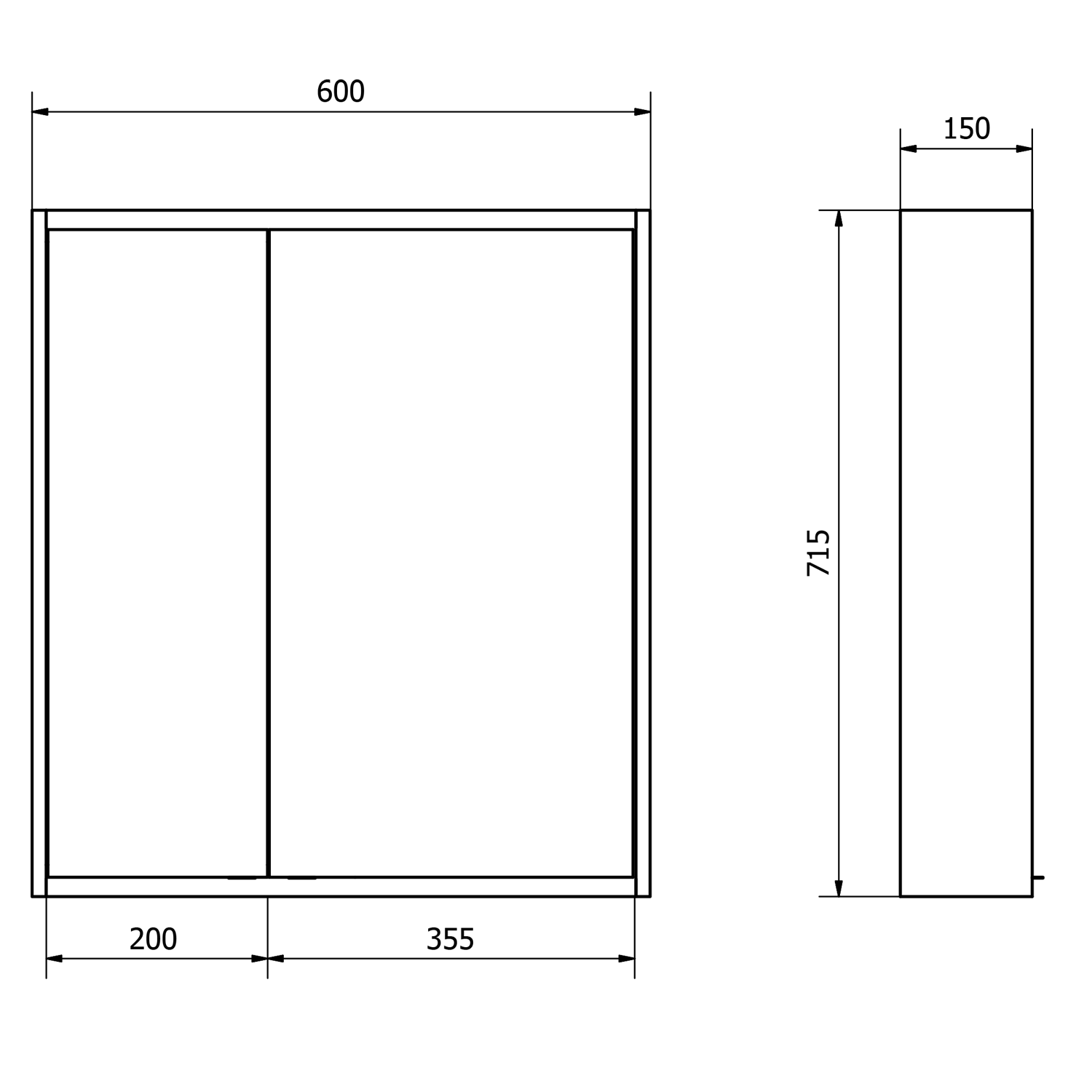 - 2x asymetrická dvířka se zrcadlem