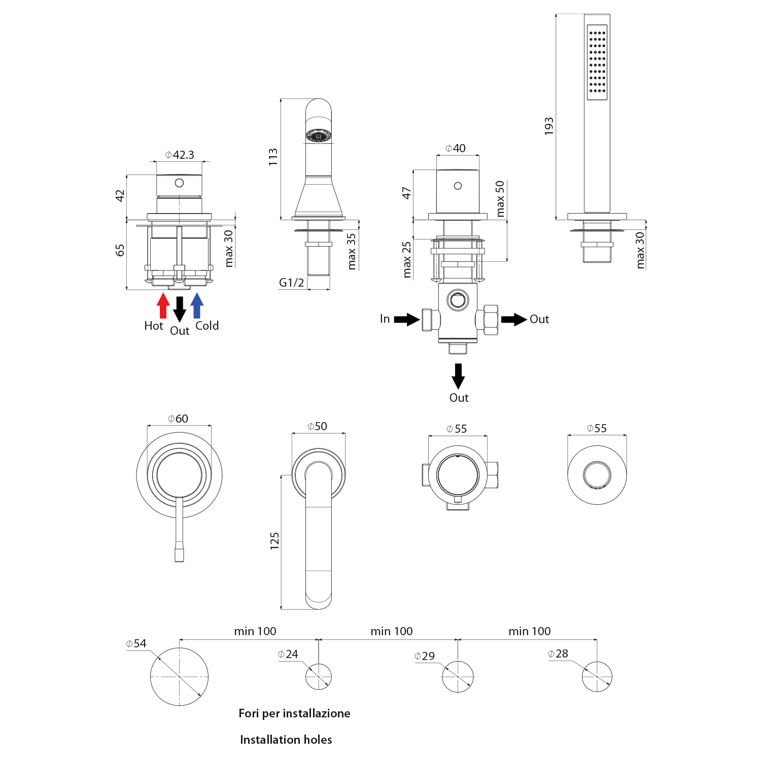 Sapho BLUE čtyřprvková baterie na okraj vany, chrom BUTECH4