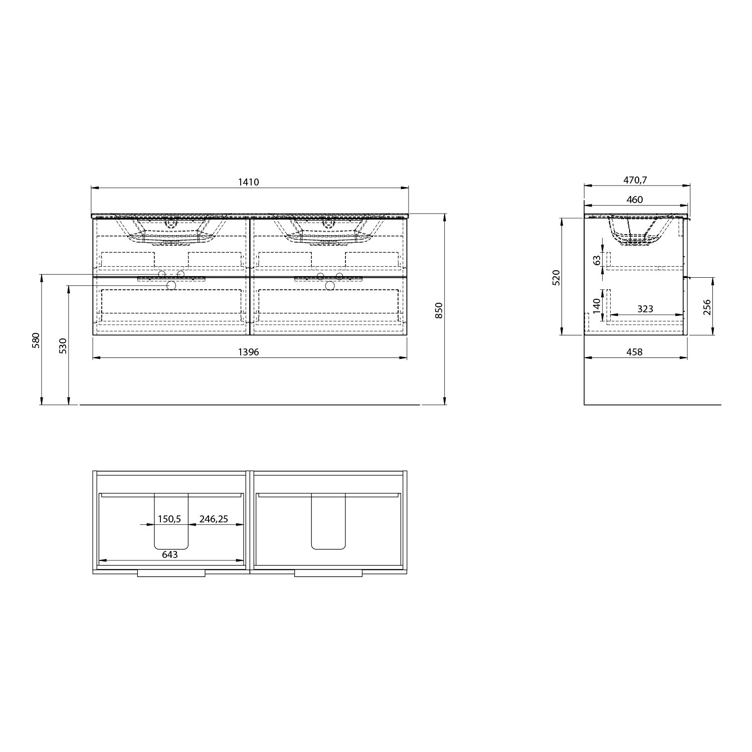 Sapho CIRASA umyvadlová skříňka 139,6x52x46cm, bílá lesk CR141-3030-21
