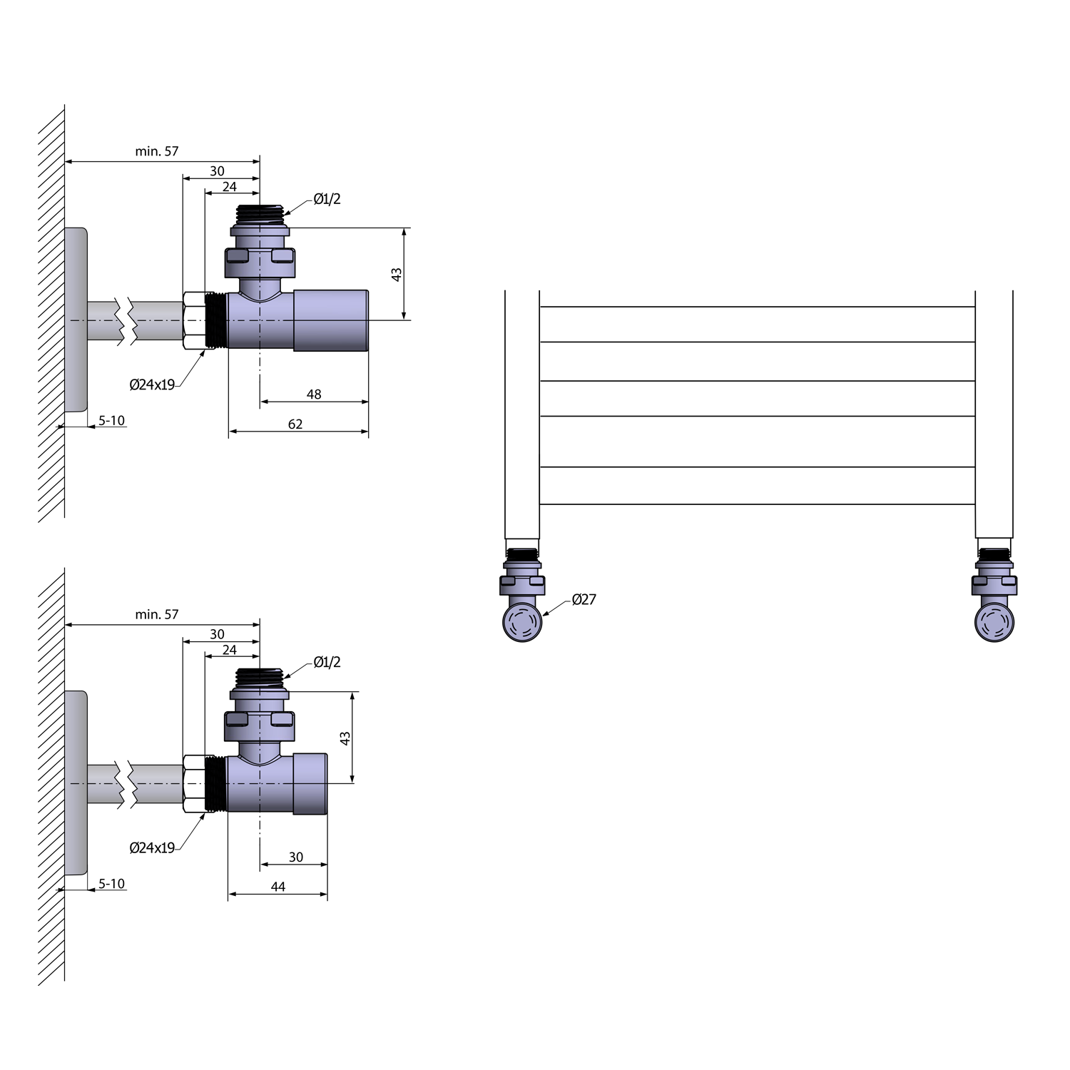 Zpětný ventil je skryt pod ozdobnou krytkou. Uzavírá se pomocí hexagonálního klíče. Neslouží k regulaci teploty, pouze k uzavření potrubí, např. v případě demontáže otopného tělesa, bez nutnosti vypuštění topného média.