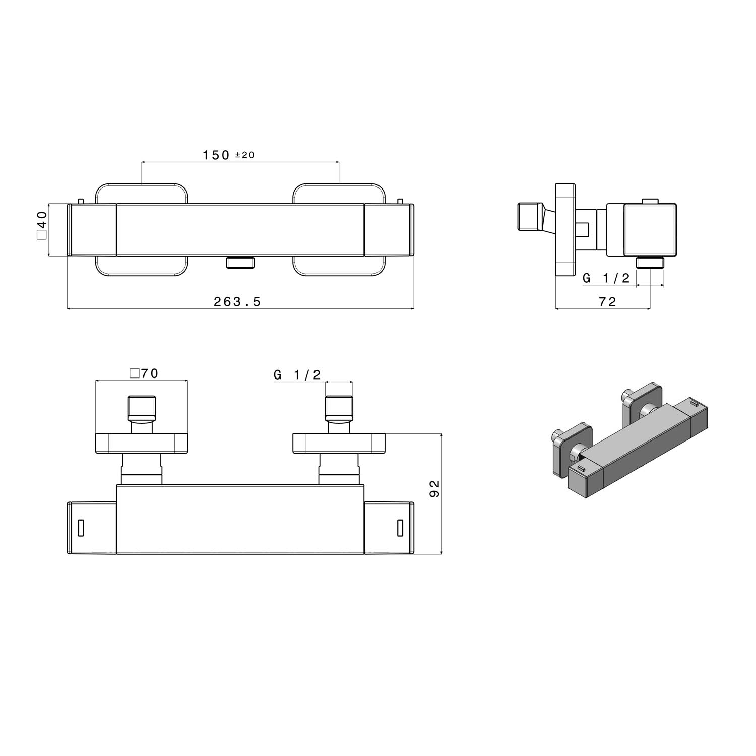 Sapho DIMY nástěnná sprchová termostatická baterie, černá mat DM245BL