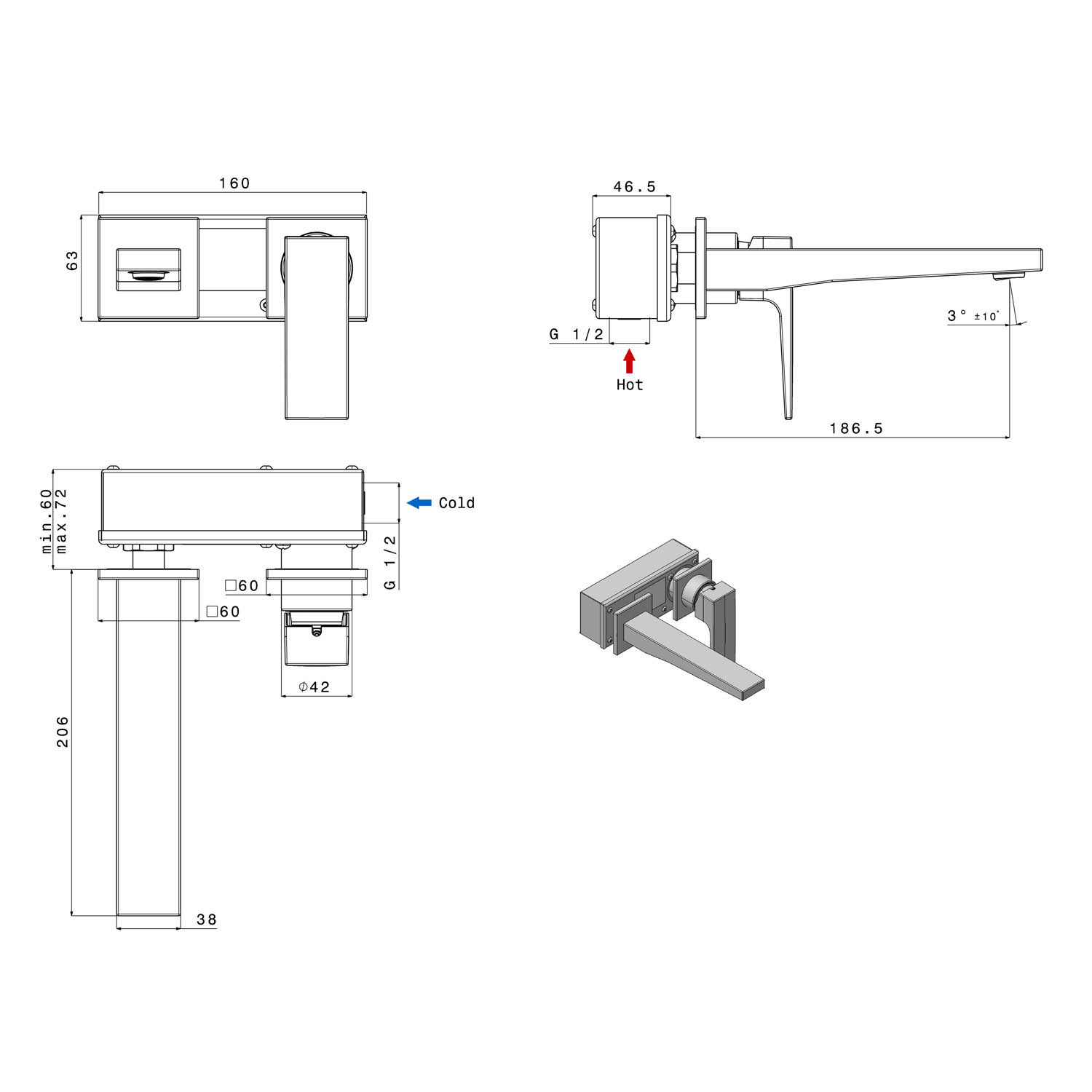 Sapho DIMY podomítková dvouprvková umyvadlová baterie, černá mat DM018BL