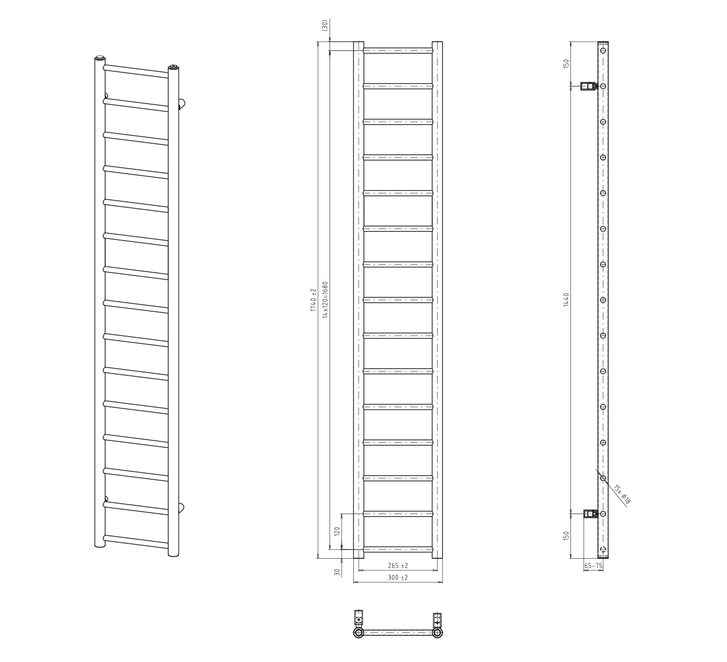 Sapho DINA otopné těleso 300x1740 mm, černá mat IR376B