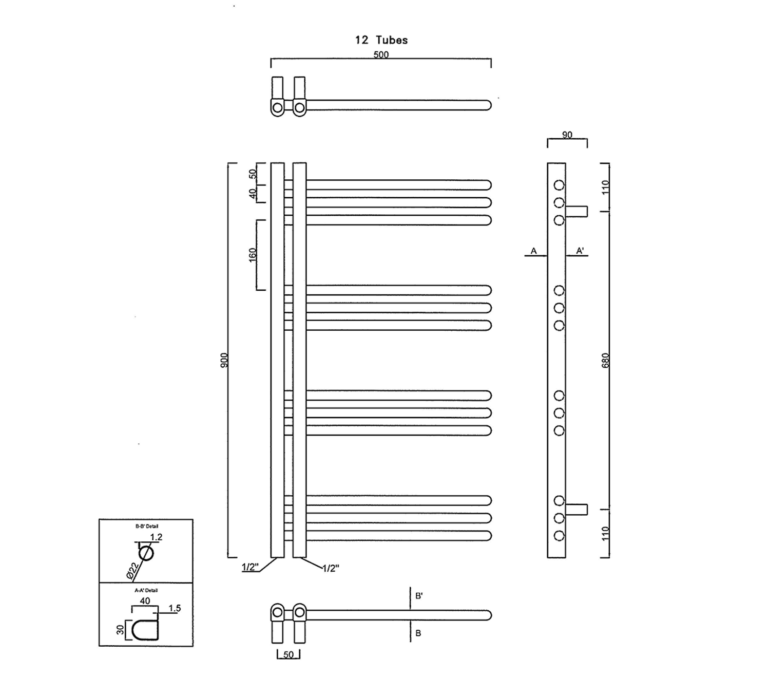 Designově tvarované koupelnové otopné těleso s výjimečným vzhledem je vyrobeno z ocelových trubek. U radiátoru oceníte zejména jeho praktičnost, díky své konstrukci umožňuje jednoduché a pohodlné zavěšení ručníků ze strany na horizontální tyče. Praktická rozteč 50 mm středového připojení umožňuje kombinovat s designovými ventily z naší nabídky i v kombinaci s elektrickou topnou tyčí.