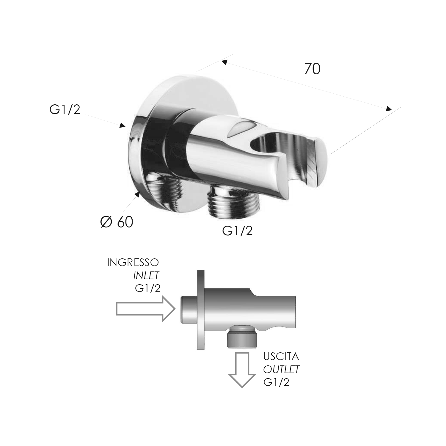 Sapho Držák sprchy kulatý, pevný, s vyústěním, zlato 1205-0917