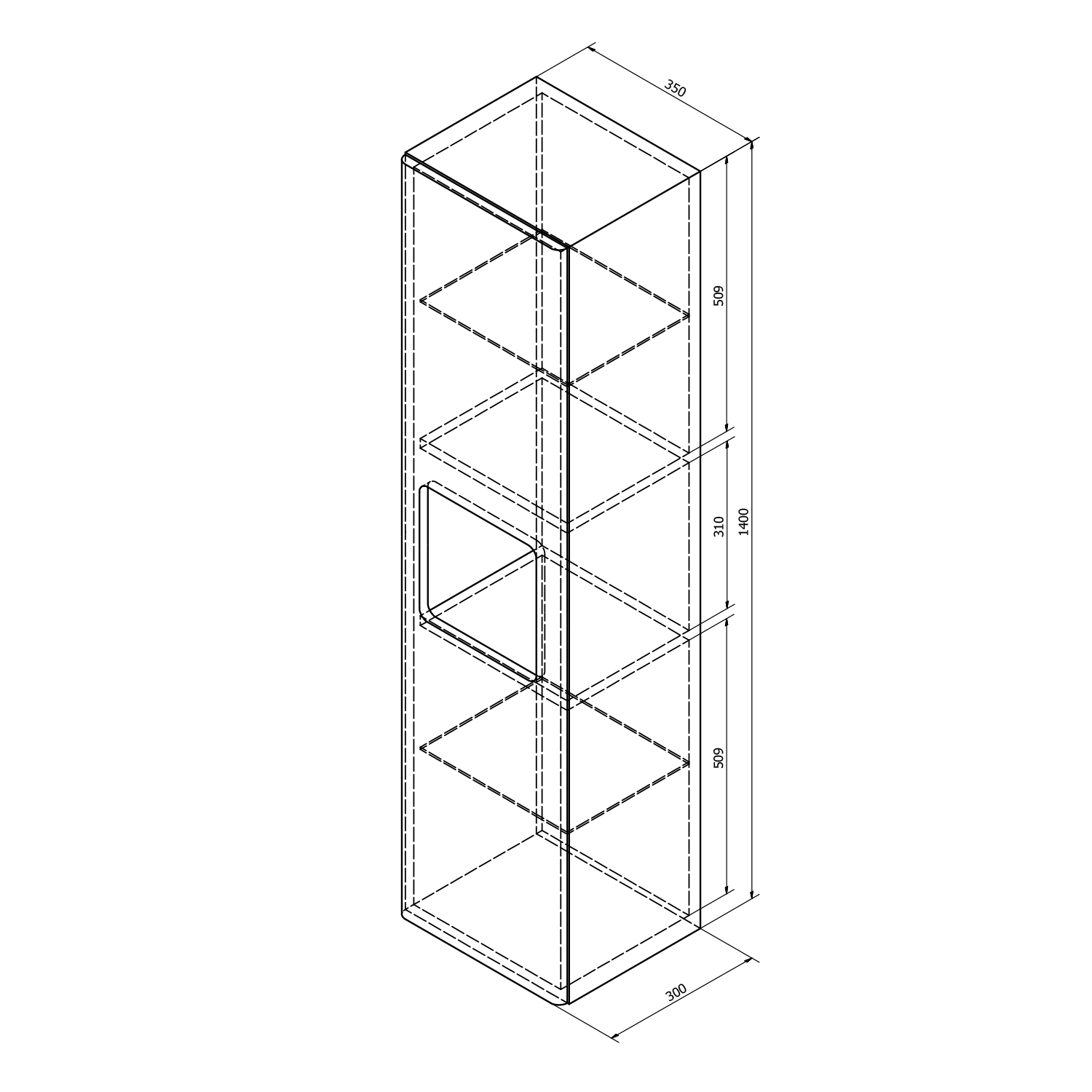 - Uvnitř 2 napevno dané dřevěné a 2 skleněné výškově stavitelné police