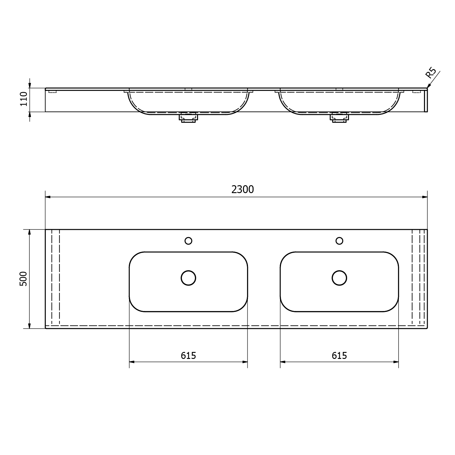 Sapho EMICO dvojumyvadlo, Rockstone, 230x50cm, límec L, pravé, bílá mat EM230-B2R-L