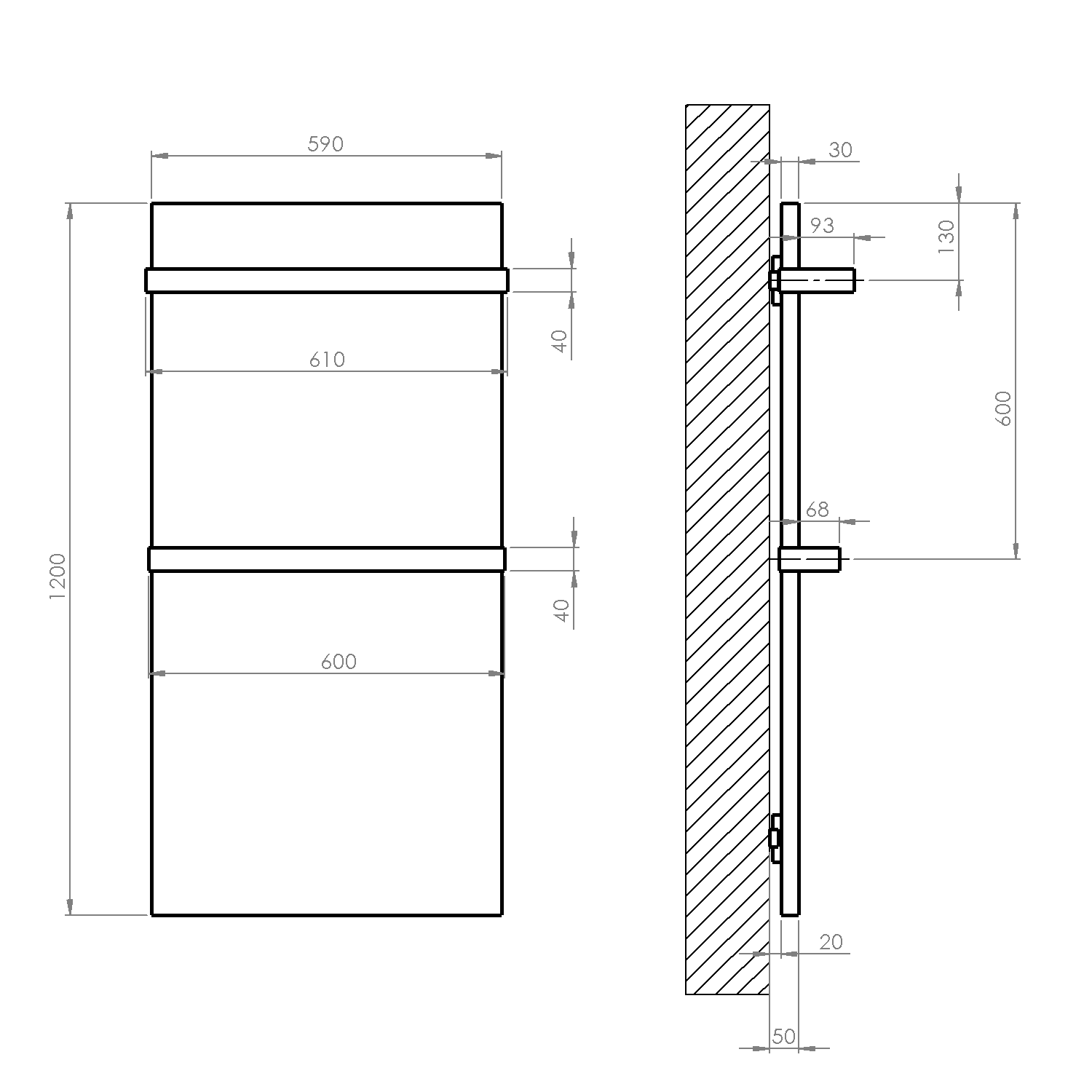 Sapho ENIS koupelnový sálavý topný panel 600W, IP44, 590x1200 mm, černá mat RH600B