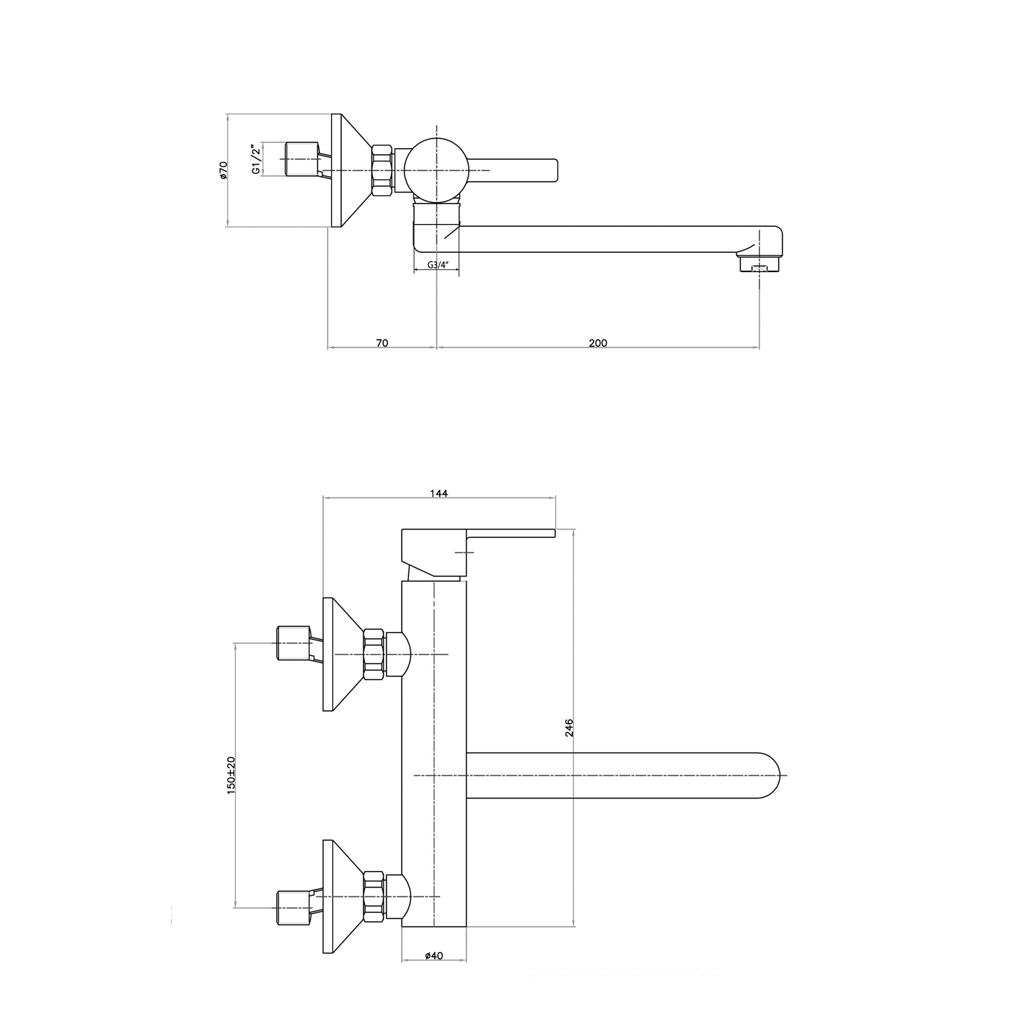 | Instalace: | Nástěnná 150 mm |