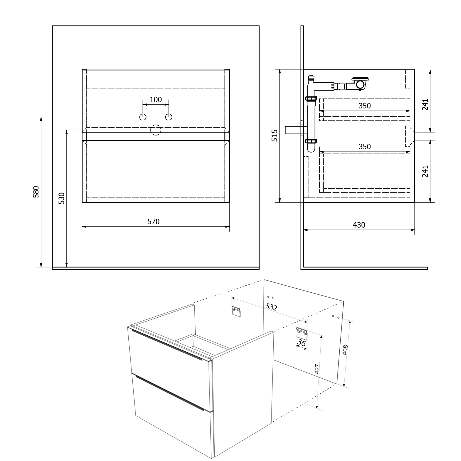 - Horní zásuvky bez výřezu pro sifon.