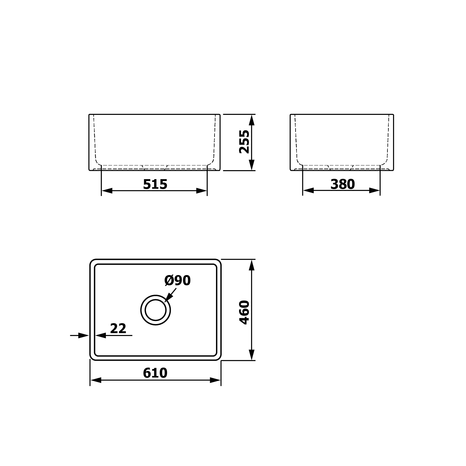 Sapho GLORY keramický dřez 61x46cm, bílá 50260