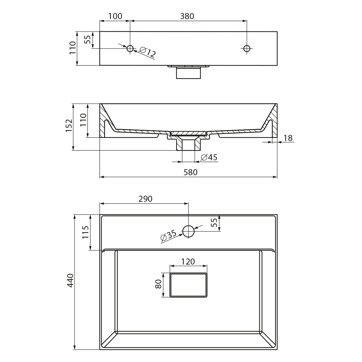 Sapho GODIVA umyvadlo, litý mramor, 58x44cm, bílá GU058