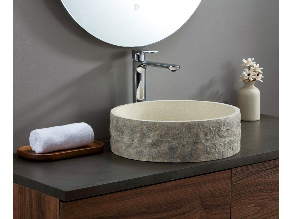 Sapho ISPIR betonové umyvadlo včetně výpusti, 40cm, bílý pískovec AR474