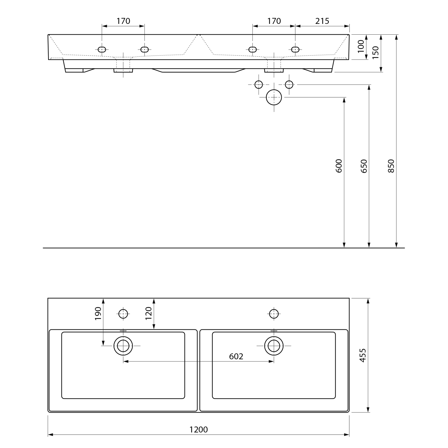 Sapho KARE 120 keramické dvojumyvadlo nábytkové 120x46cm, bílá 17120