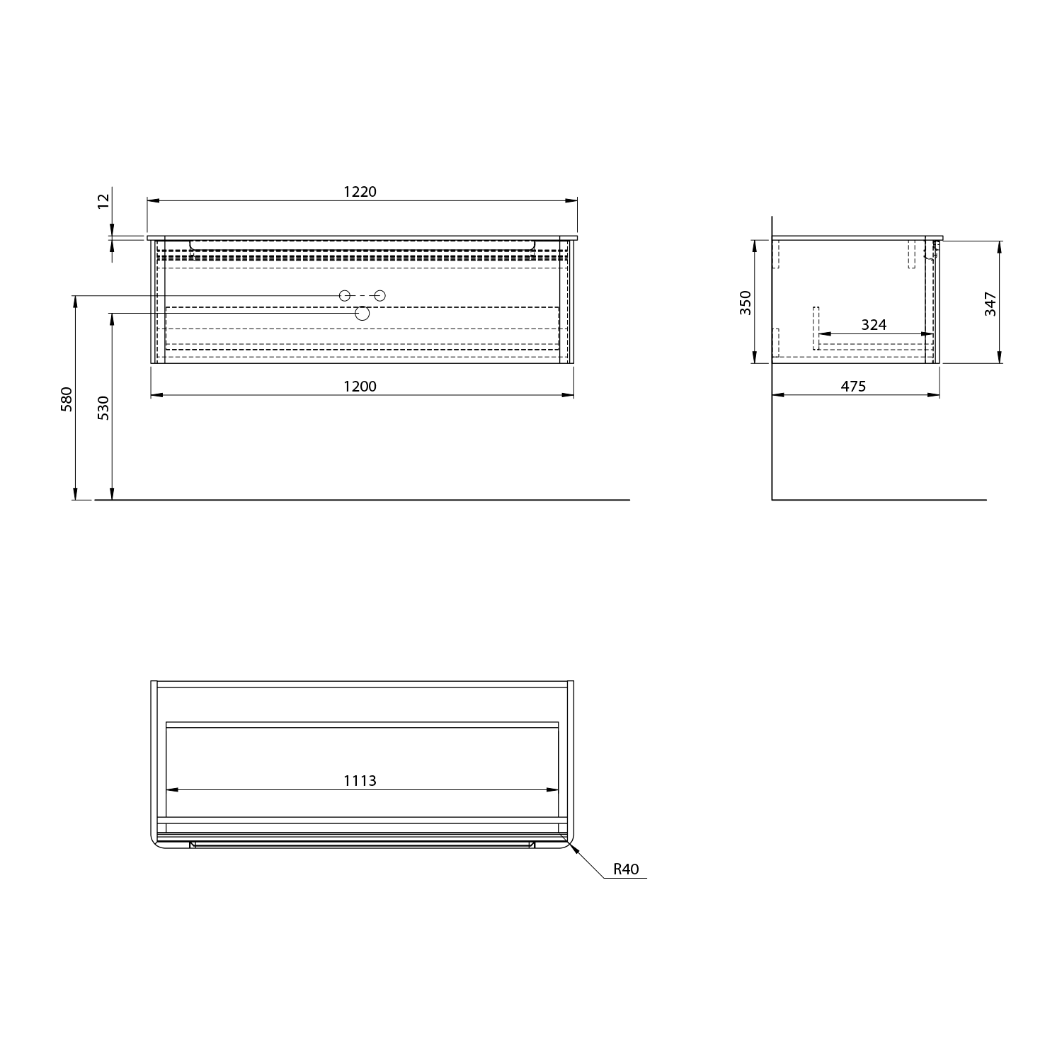 Sapho KERALA umyvadlová skříňka 120x35x47,5cm, 1x zásuvka, antracit matný KR120-3434