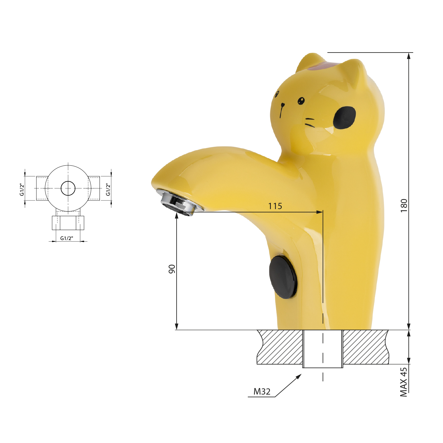 Sapho KID Senzorová stojánková keramická baterie 6V DC (4xAA), kočka, žlutá PS402Y