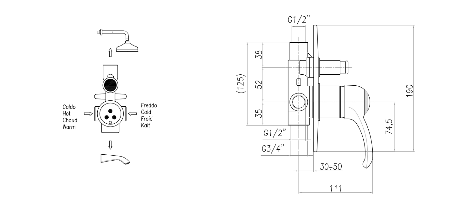 Sapho KIRKÉ podomítková sprchová baterie, 2 výstupy, chrom KI42C