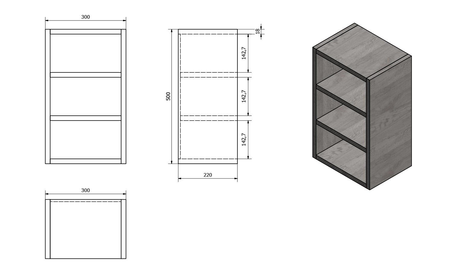 Sapho LATUS VI otevřená policová skříňka 30x50x22cm, dub alabama LT620-2222