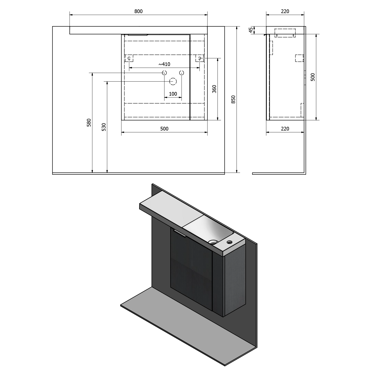 Malé rozměry koupelnového nábytku LATUS umožňují instalaci především do stísněných prostor, obzvláště na toalety. Skříňka se přímo nabízí k uskladnění čistících a hygienických prostředků nebo toaletního papíru. Umyvadlo z litého mramoru nebo keramiky vytváří se skříňkou kompaktní celek. V nabídce je jak několik tvarů umyvadel, tak barevných dekorů skříněk pro větší kompatibilitu.
