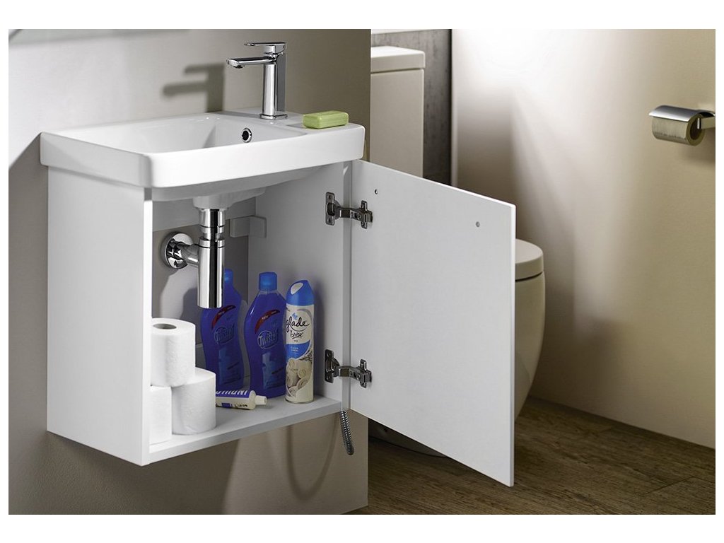 Malé rozměry koupelnového nábytku LATUS VIII umožňují instalaci především do stísněných prostor, obzvláště na toalety. Skříňka se přímo nabízí k uskladnění čistících a hygienických prostředků nebo toaletního papíru. Umyvadlo z keramiky vytváří se skříňkou kompaktní celek. V nabídce je několik barevných dekorů skříněk pro větší kompatibilitu.
