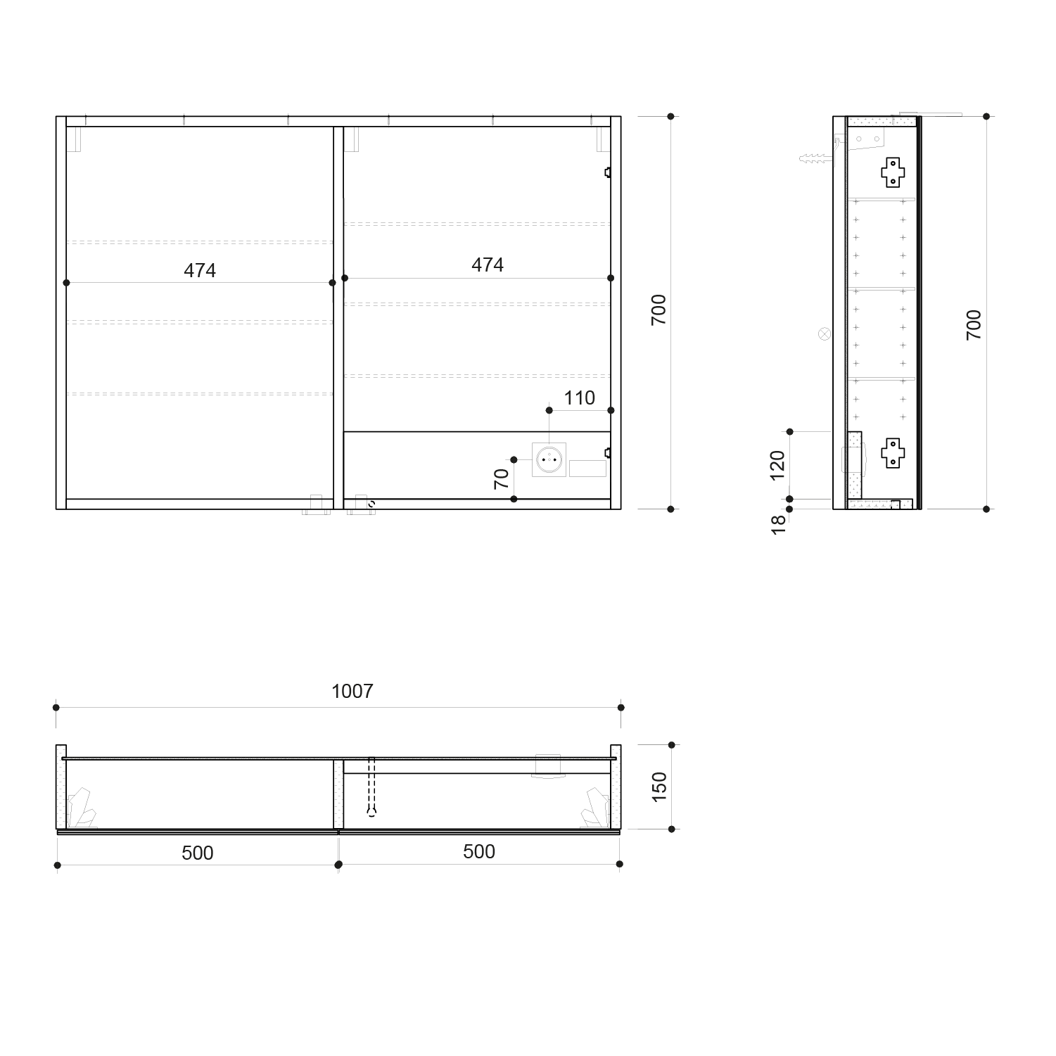 Galerky LINEX – skleněné nastavitelné police poskytují dostatek místa pro uskladnění kosmetiky, hygienických potřeb i holicího strojku. Navíc i při otevření galerky můžete používat zrcadlo díky oboustranným zrcadlovým dvířkům. Dovírání dvířek s dotahem zajišťuje značkové kování GRASS. Výkonné LED osvětlení v liště po celé šířce galerky zajistí dostatek osvětlení a ovládá se pomocí externího vypínače. Pro větší komfort ovládání osvětlení lze dokoupit bezdotykovou senzorovou sadu. Samozřejmostí je elektrická zásuvka a designová úchytka dvířek. K vybraným rozměrům nabízíme také závěsnou skleněnou poličku.