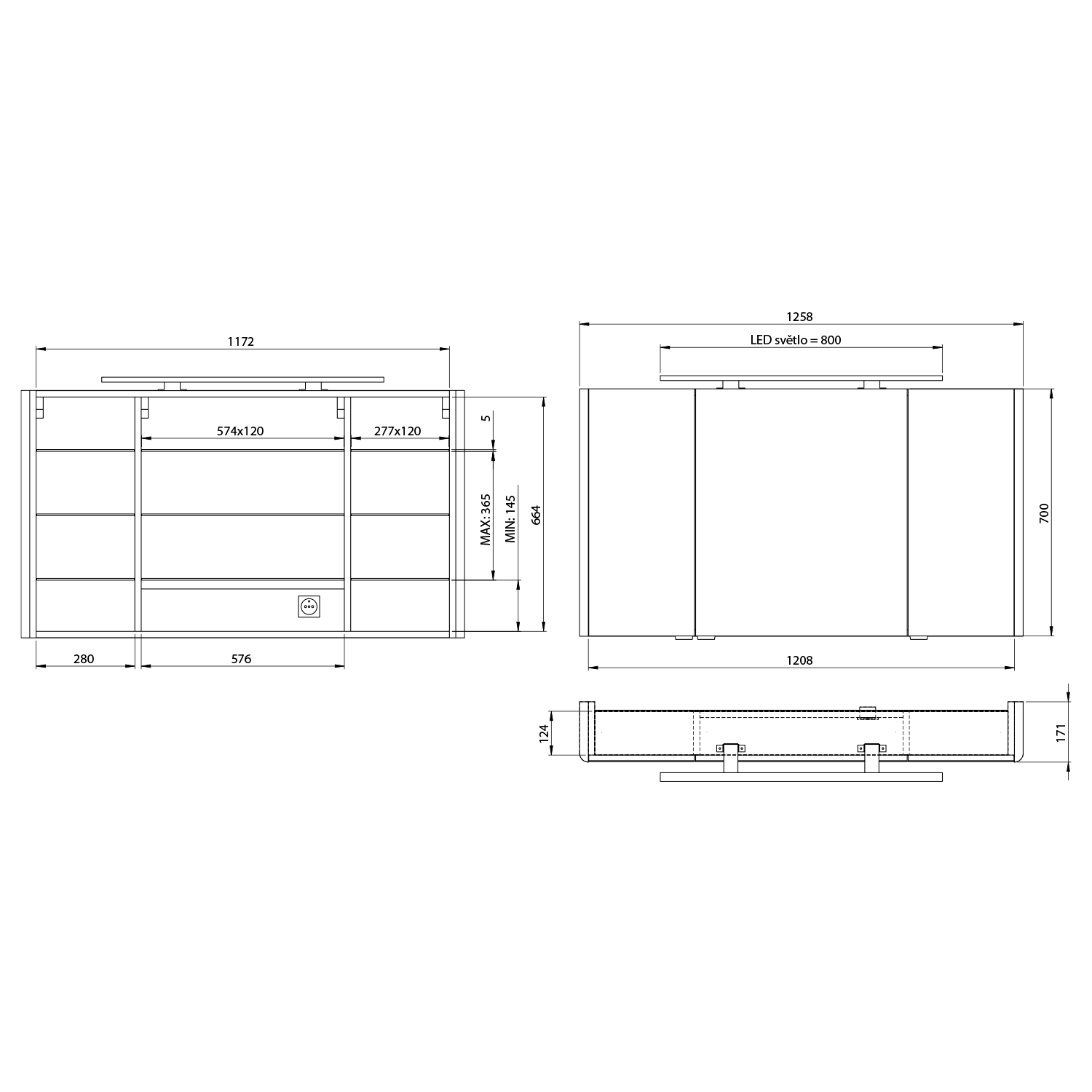 Sapho LUCIE galerka s LED osvětlením, 126x70x17cm, bílá LU125-0030